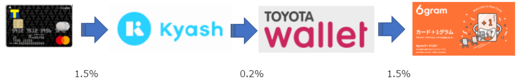 TカードPrimeからKyash、TOYOTA walletを経由して6gramを紐づける